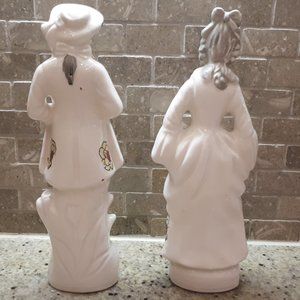 Vintage Japanese Porcelain Early European Couple in white Gold and Red.