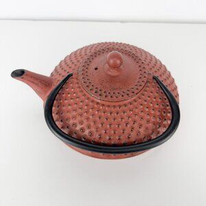 Japanese Red Bumpy Hobnail Cast Iron Tea Kettle Rust Red Teapot With Infuser