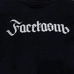 Authentic black long sleeve t-shirt from cutting-edge Japanese streetwear brand Facetasm, with side slits and white logo embroidery at front. Size 1 (M).