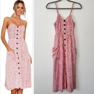 Japna Dress Summer Ditsy Floral Peasant Button Down Tank Pockets Lined Sz S