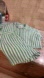 Comfortable pajama set with button-up top. Features green and white stripes. Perfect for lounging.