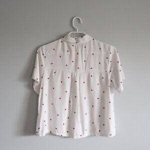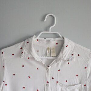 Japna Women's White Sz S Buttoned Ladybug Print Collared Cropped T-Shirt Top