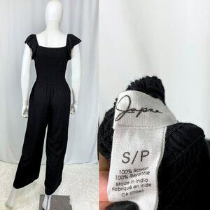 Japna black shirred wide-leg flutter sleeve pockets rayon goth jumpsuit small