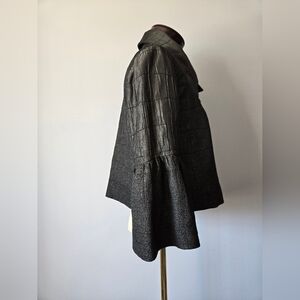 Incredible gray jacket with a textured design and 3/4 bell sleeves. Oversized collar with two button closure. Lightweight to midweight.