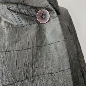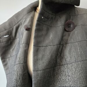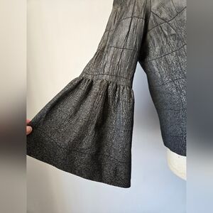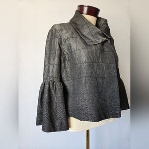 Incredible gray jacket with a textured design and 3/4 bell sleeves. Oversized collar with two button closure. Lightweight to midweight.