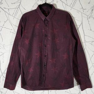 Jared Lang After Hours Burgundy Stars Print Slim Fit Shirt
