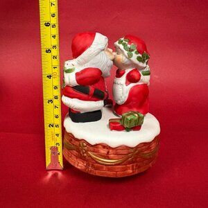 Jasco 1981 Santa Mrs Claus Music Box Bisque Porcelain Christmas Kissing Work
