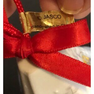 • Adorned with a red ribbon for hanging