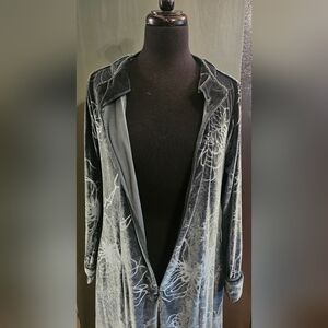 Jasmine rose dark green velvet floral zip up robe size small in great has pockets