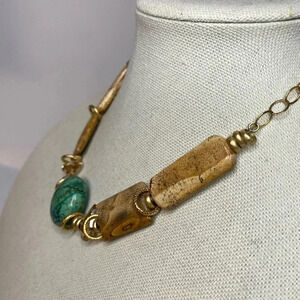 Jasper and turquoise coloured jasper necklace - Gold tone findings