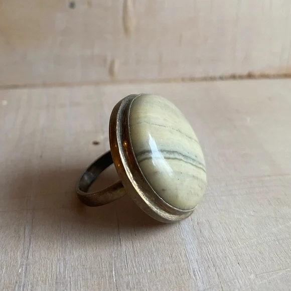 Beautiful statement ring, real Jasper, needs a shine! Size 7, I think!