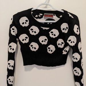 Jawbreaker Skull Pattern Crop top long sleeve knit sweatshirt