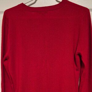 Elegant red cardigan with a classic V-neck. Ideal for any occasion.