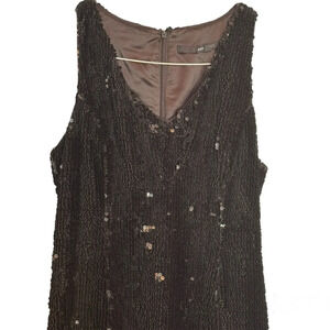 This beautiful full sequin sheath dress by Jay Godfrey is in EUC and features a V neck, hidden zipper closure, all over black sequin construction, is sleeveless and knee length. It would be an amazing dress for any formal or prom event, adding a sleek, elegant, and sophisticated yet fun and party touch to your wardrobe.