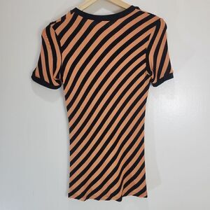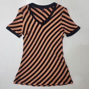 Jay'Z Peach & Black Knit Diagonal Stripes Short Sleeve Tee Too