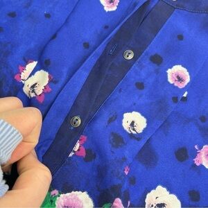 - Bright cobalt blue with pink/purple/aqua blue floral pattern