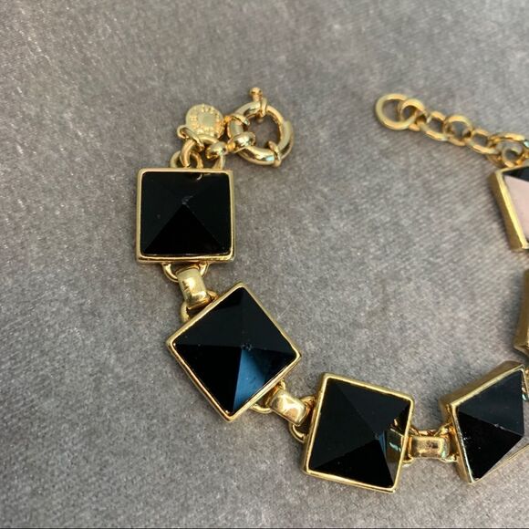 J.Crew Black Square Gold-tone trim chain link bracelet
