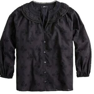 Jcrew cotton size Small, Button-front black eyelet peasant top