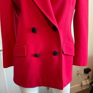 Bof! Jean Claude Poitras Designer Vintage Double Breasted Wool Blend Blazer in Red + Black Embellishment