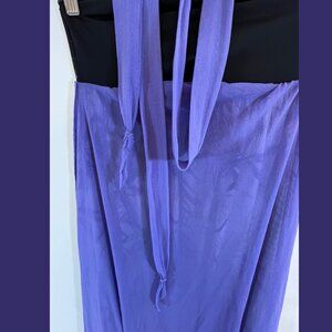 Halter neck mesh maxi dress, double tiered ruffle hem, pull on style.