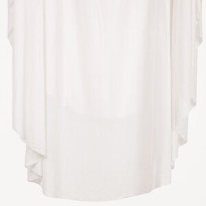 This top from Jean Paul Gaultier is crafted in a white mesh, and is adorned with soutache embroidery on the top. It features batwing sleeves, a scoop neckline, ruffled detailing, and an inner lining.