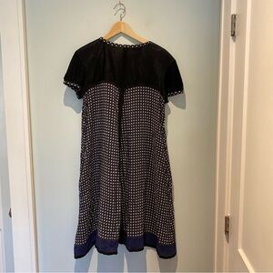 Gorgeous silk Gaultier Femme dress with perforated detailing and side slash pockets. Never worn in new condition. Exactly the dress in the stock photo but I’m black white and blue colourway.
