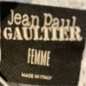 Gorgeous silk Gaultier Femme dress with perforated detailing and side slash pockets. Never worn in new condition. Exactly the dress in the stock photo but I’m black white and blue colourway.