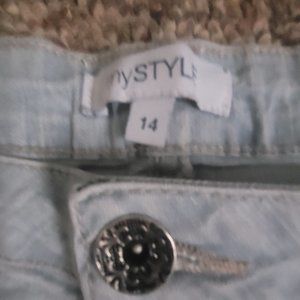 MyStyle Size 14 Light Blue Jean Shorts 3 inch inseam hip to hip 19 inches