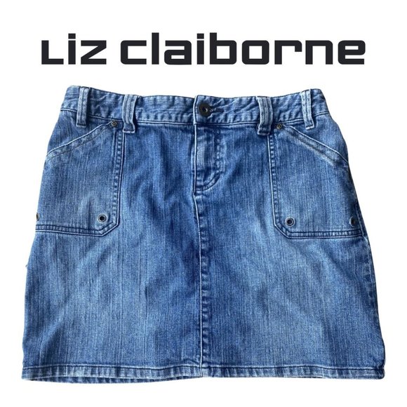 Jean Skirt Liz Claiborne Petite Size 10 Denim Skirt W/Pockets Front and Back