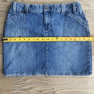 Very nice and well made Liz Claiborne petite denim mini skirt. This is in great condition and has a bit of a distressed look. This skirt has a nice weight and will last a long time with the quality. Would look great with tights in the fall and bare leg in the spring/summer. great piece. Please see pictures for complete sizing .