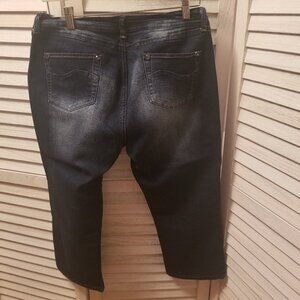 Jean capri, size 12. Beautiful rhinestones on the front of one leg. Worn only a few times. 70% cotton 28% polyester 2% spandex