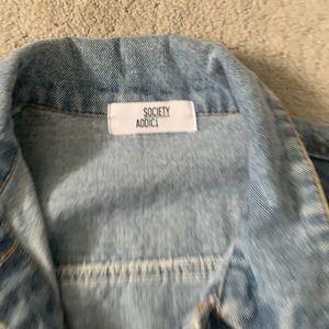 Women’s oversize short jean jacket / never worn. Shorter in the front, waist length in the back. Super cute!
