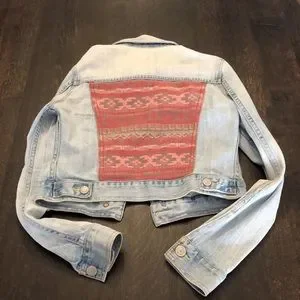 American eagle xs jean jacket with stitched design on back. Nice light wash colour.
