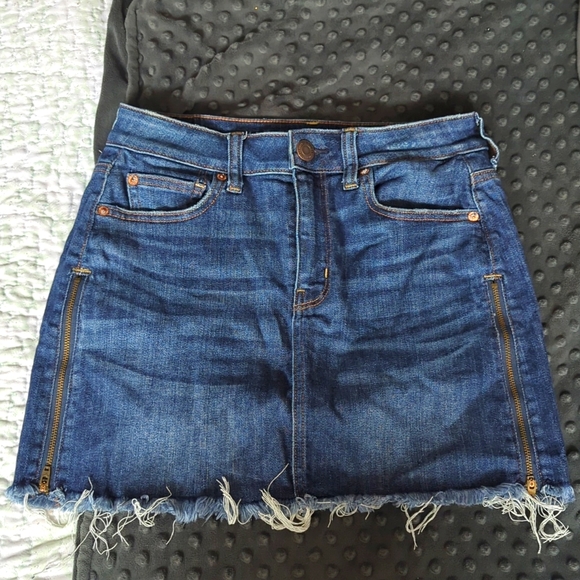 american eagle jean skirt (mini). unzips on the side if you want to switch it up. nothing wrong with it