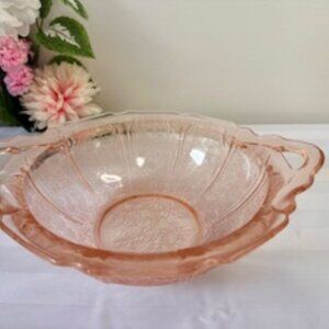 Jeanette Glass Cherry Blossom Pink Depression‎ Bowl Two-Handled Floral Dish