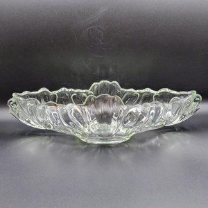 Jeanette Glass Gondola Bowl Fruit Compote Vintage Clear Oblong Console Read.