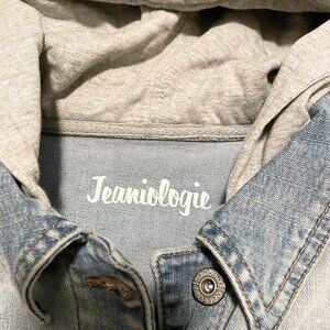 Jeaniologie Altered Jean Denim Jacket Dont Talk to Strangers Patch Sz Large