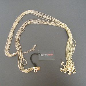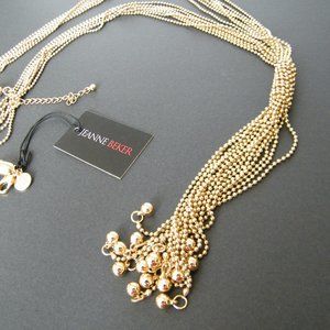Great tassel necklace from Jeanne Beker. Gold tone chains that are gathered in a knot, to form a long tassel.