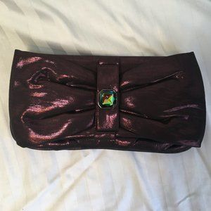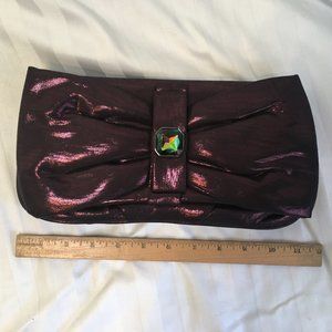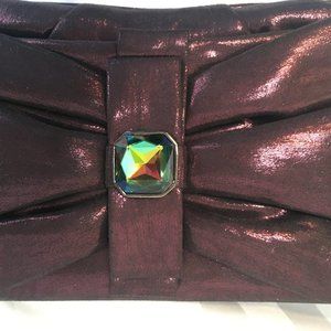 Jeanne Lottie Designer Magenta Satin Fabric Clutch Purse Handbag Chain Jewel