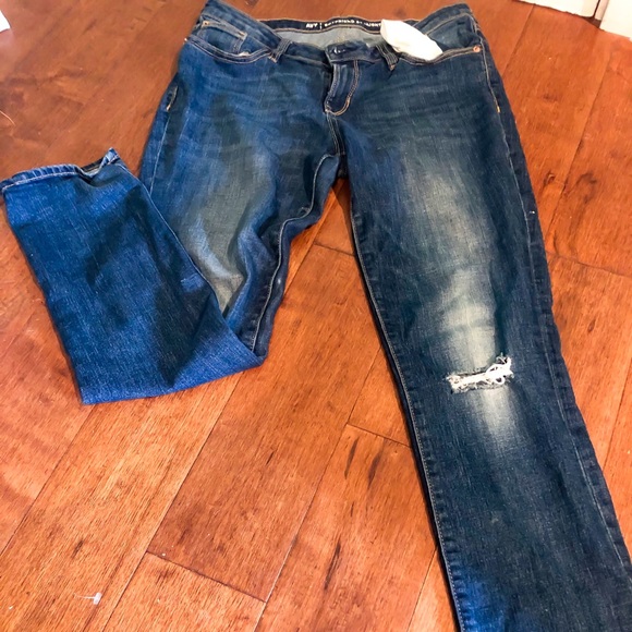 Old Navy worn boyfriend jeans, fits a medium (maybe size 10-12). Ripped on left knee