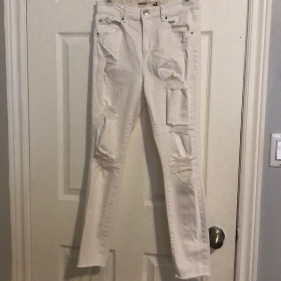 White garage jeans with rips down the legs (size 7 but wouldn’t let me select)