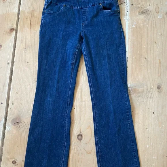Jessica modern fit pull on jeans. Size 10 but the waistband holds everything in place so they fit tight in my opinion. In great used condition, they no longer fit. If you have any questions just let me know. Smoke free, cat friendly home.