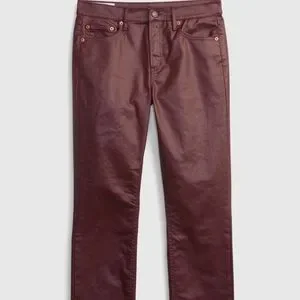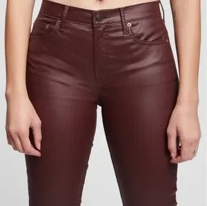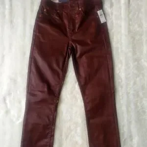 Women's Mid Rise Vintage Slim Coated Gap Jeans, Brand New, Wine Colored, Leather Looking, Stretchy Material, Size 24
