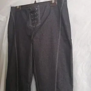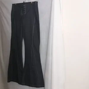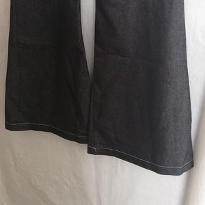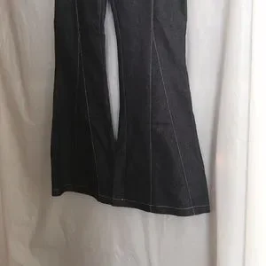 Light Blue Jeans with white stripe stitching. Rope belted and flared leg area.