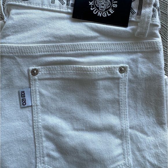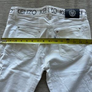 These stylish Kenzo Paris jeans in size 38 (French) are in great condition! Featuring a bold Kenzo Paris Jungle logo at the waistband and the iconic Kenzo tag on the back pocket, they are perfect for elevating any outfit. Made from durable, high-quality denim, these white jeans are both chic and comfortable.