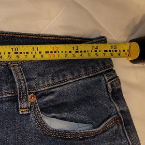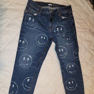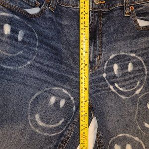 Ladies Boyfriend fit jeans. Size 6. See pictures for exact measurements. Hand bleached smiley faces for design. Excellent condition.