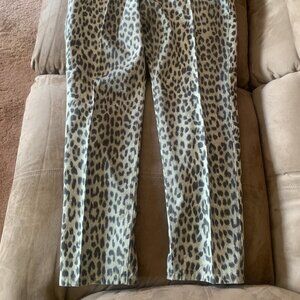 Leopard Jean Boot style. 100% Cotton. Waist is 34 inches. Length of Leg from Crotch is 28 inches.