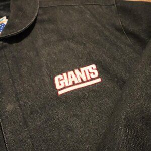 Faded black Jeff Hamilton bomber jacket with embroidered New York Giants logos. Made in USA, 100% cotton. Size Large. Great condition and a rare piece, perfect for collectors or streetwear-inspired outfits.
