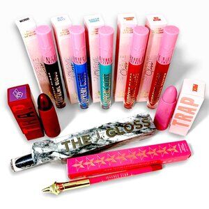 ~A Jeffree Star Makeup Lot consisting of a selection of 9 Lip Products including Velvet Trap lipsticks, Supreme Gloss lipsticks, The Gloss, and Lip Liner~