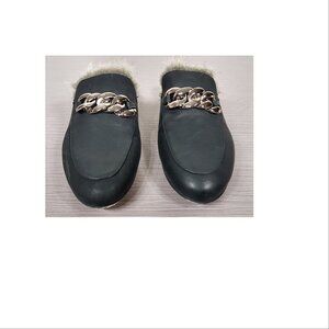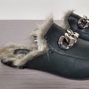 Jeffrey Campbell 'Apfel' Mule Black Leather With Faux Fur, Womens Size 6.5